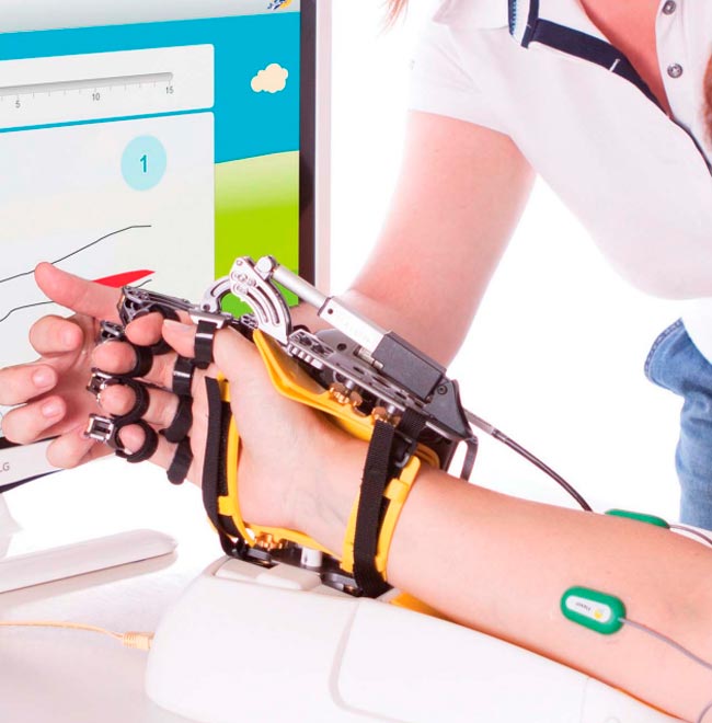 Cet exosquelette de rééducation dispose d’une technologie de pointe qui combine les avancées en robotique et en neurosciences, permettant la récupération des mouvements de la main ou du bras paralysés. Pour cela, il propose des jeux interactifs qui permettent aux patients de récupérer toute altération produite au niveau de l’épaule, du bras et de la main.